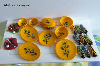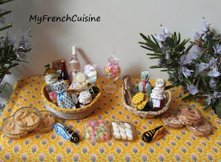 En faisant mes petites miniatures provençales pour Sophia, j'ai eu envie de faire quelques petites spécialités gourmandes que l'ont trouve dans notre région, les calissons, les berlingots, les fromages de chèvres etc...